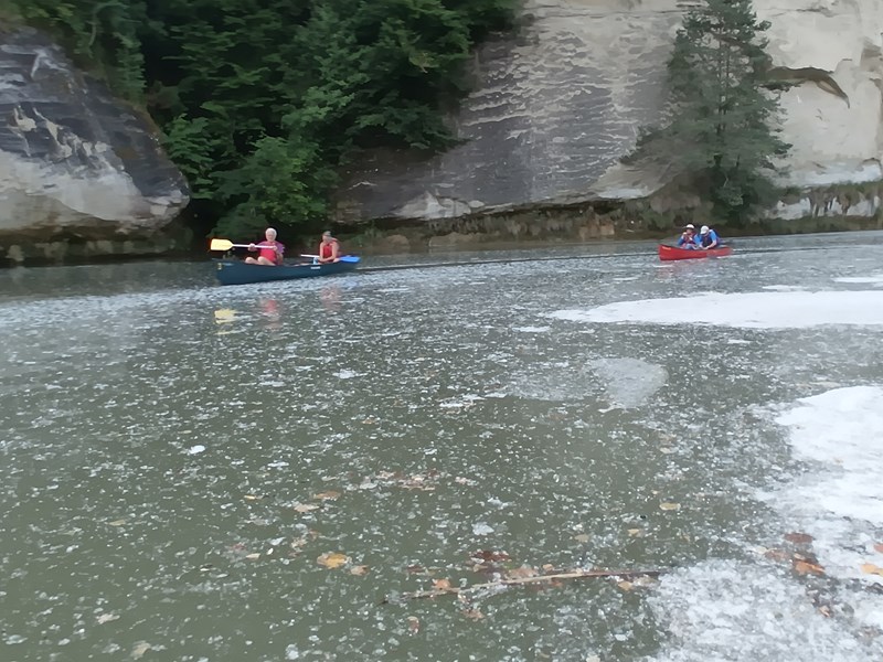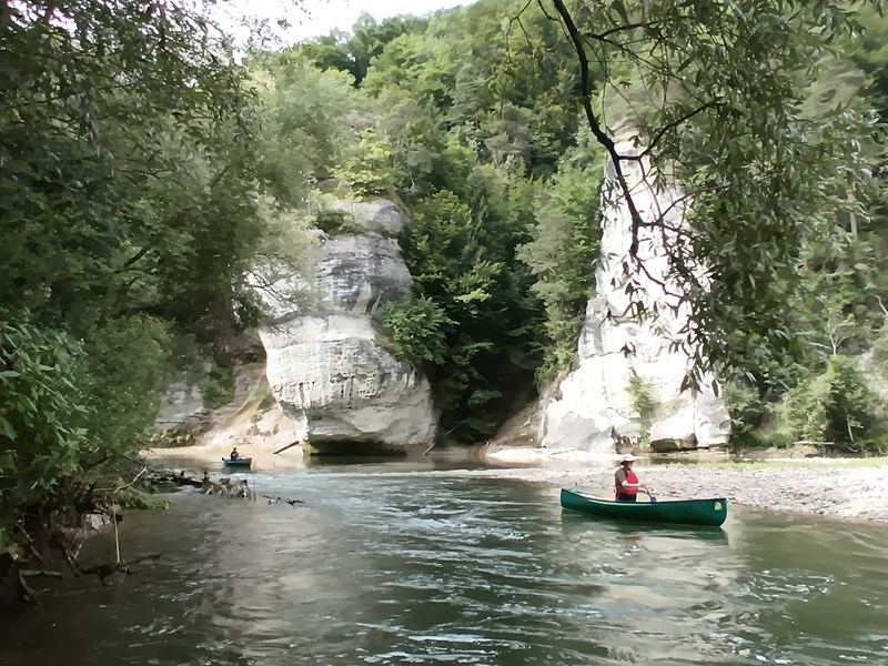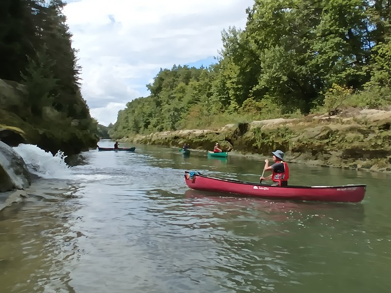 Lehrprogramm: Dieser wunderschöne Flussabschnitt bietet viele ausgeprägte Kehrwasser und Stromzungen. Präzise Fahrweise, erkennen der Route und Schwierigkeiten.