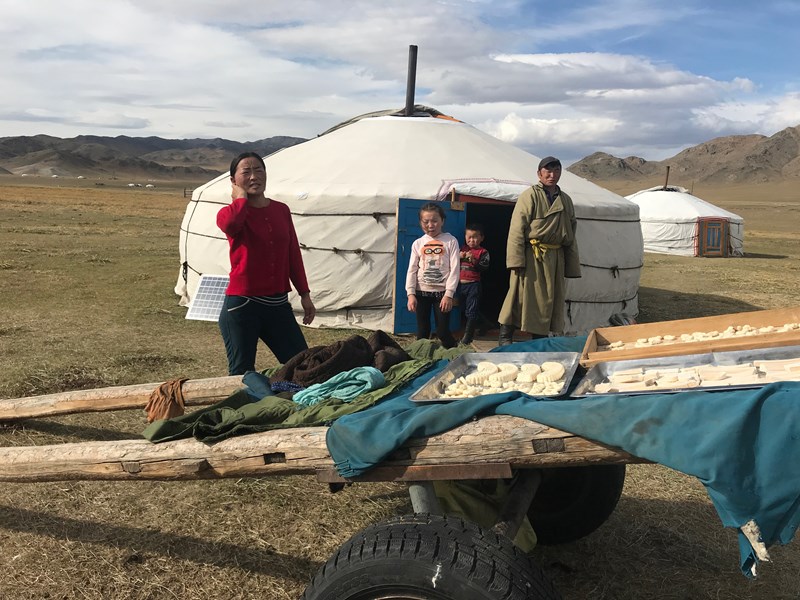 Nach unserer Ankunft in Ulaanbaatar geht es sobald wie möglich weiter, per Inlandsflug nach Mörön, die Hauptstadt des Khövsgöl aimags, der nördlichsten Provinz der Mongolei (wir versuchen, direkt nach Ankunft in Ulaanbaatar weiterzufliegen – aufgrund der sich häufig ändernden Inlandsflugpläne können wir das aber nicht versprechen!). In Mörön angekommen, werden wir unseren mongolischen Guide und Fahrer kennenlernen und gemeinsam mit den beiden direkt vom Flughafen in das etwas ausserhalb gelegene Jurtenhotel unserer Freunde und Partner Esee und Möögii fahren. Dieses wunderschöne und liebevoll geführte Camp, das genau am Ufer des Delgers liegt, ist ein idealer Ort, um sich erst einmal zu akklimatisieren und „anzukommen“. Hier werden wir verwöhnt mit gutem Essen, einer warmen Dusche und dem Luxus eines Betts in einer Jurte. Am nächsten Tag kaufen wir in Mörön den Proviant für die nächsten Tage ein. Besonders das Einkaufen auf dem grossen, verwinkelten und staubigen Markt von Mörön ist ein besonderes Erlebnis.