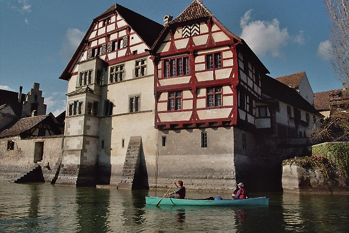 Instruktion in die Paddeltechnik auf dem Fluss / unterwegs Besichtigung des sehenswerten Städtlein Diessenhofen / Mittagessen unterwegs / Kanufahrt bis Schaffhausen / Bezug des Zimmers in der Jugendherberge / Besichtigung des Städtchens und Nachtessen