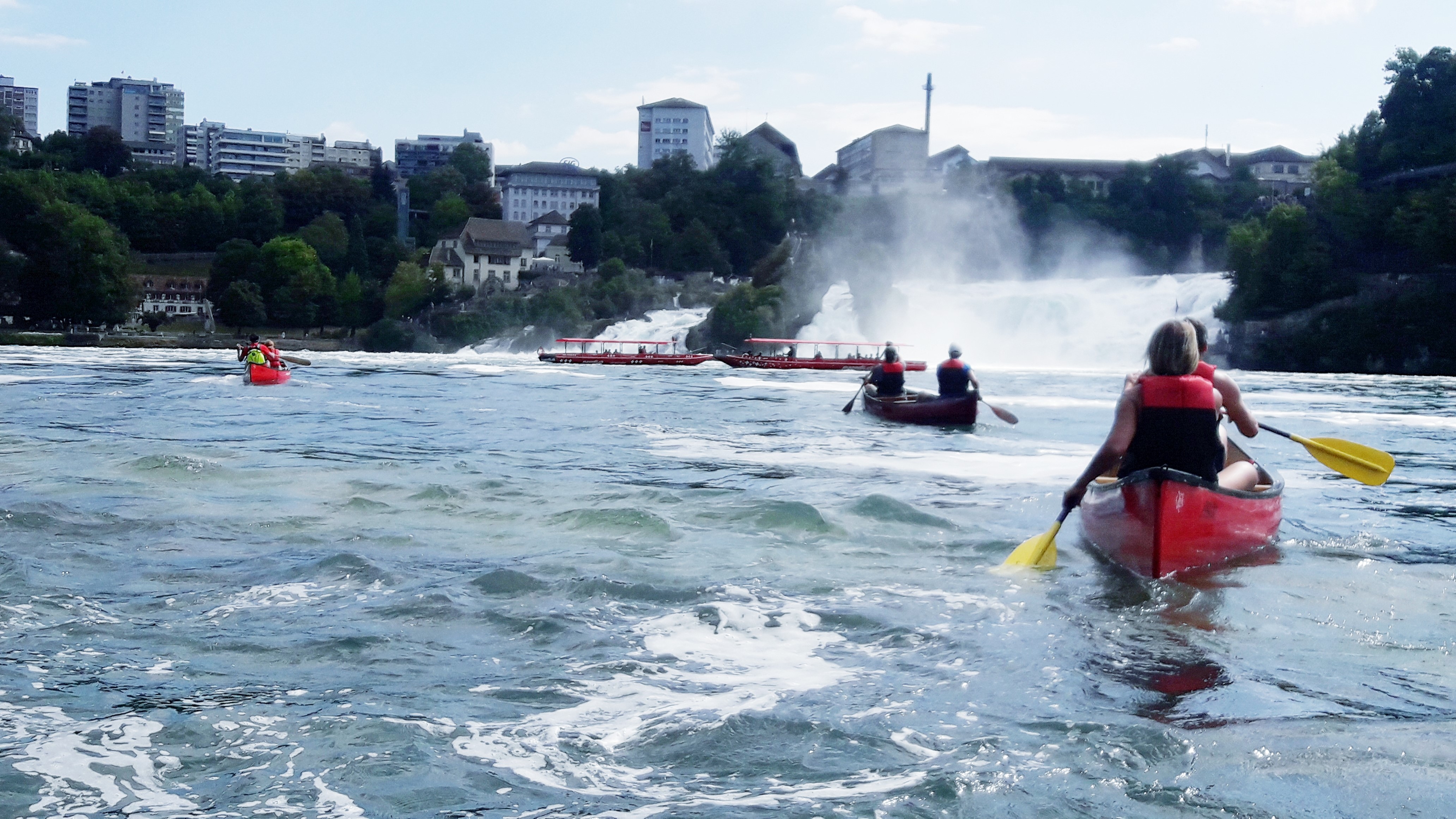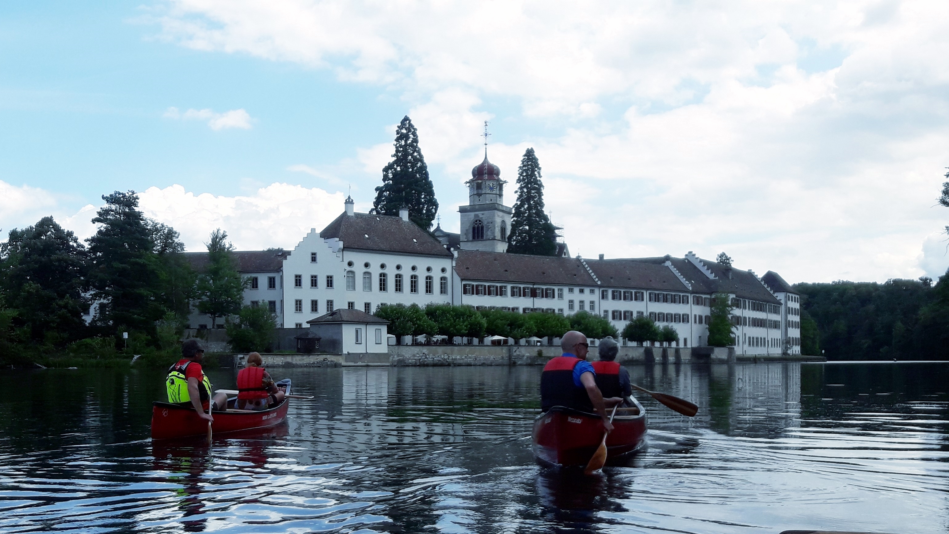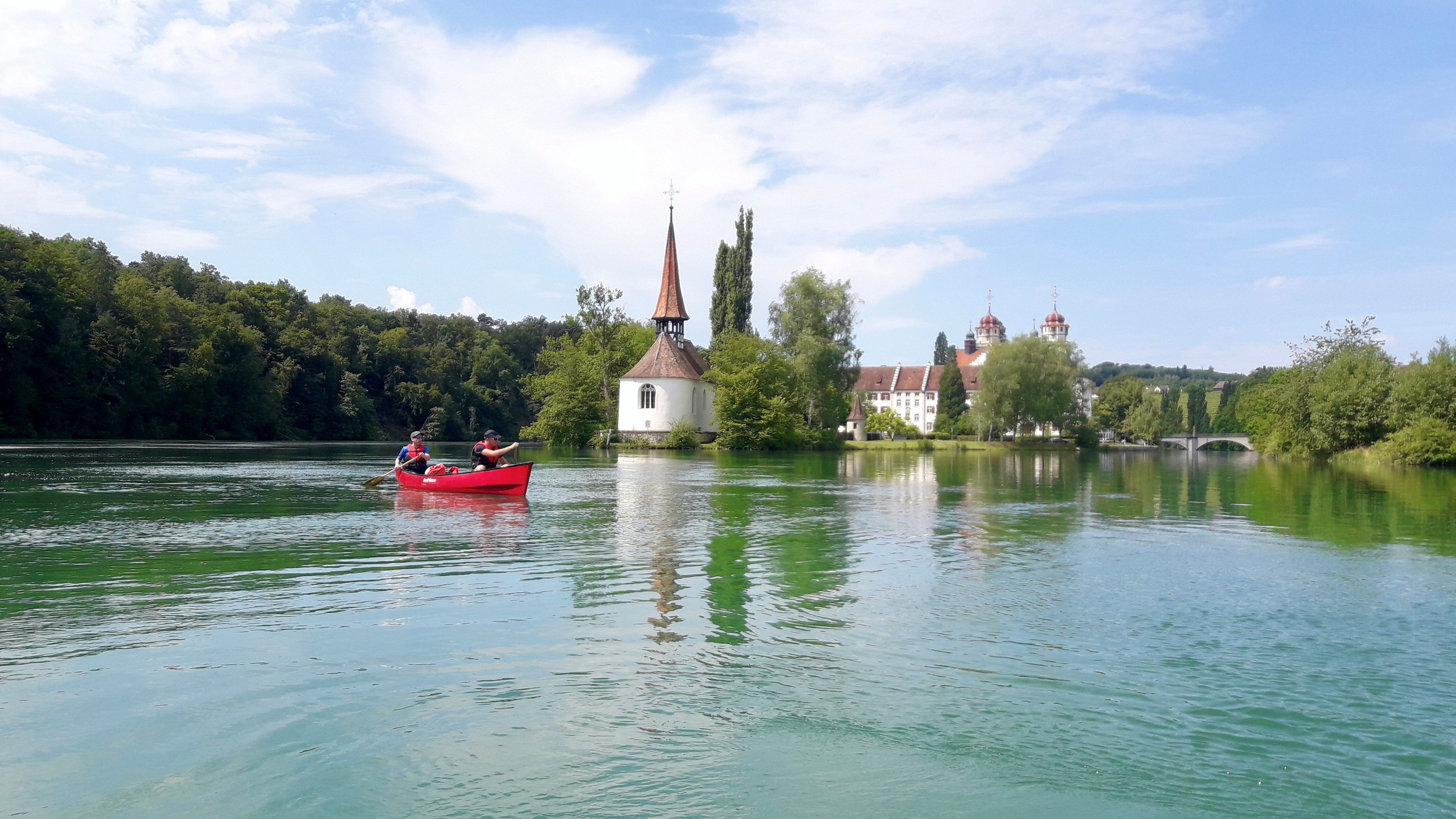 «Die Königsetappe»: Start unterhalb des Rheinfalls mit bester Aussicht auf den grössten Wasserfall Europas / Mittagessen unterwegs / Umfahrung der Rheininsel mit dem Kloster Rheinau / Kanufahrt bis Eglisau / Heimreise ab Eglisau.