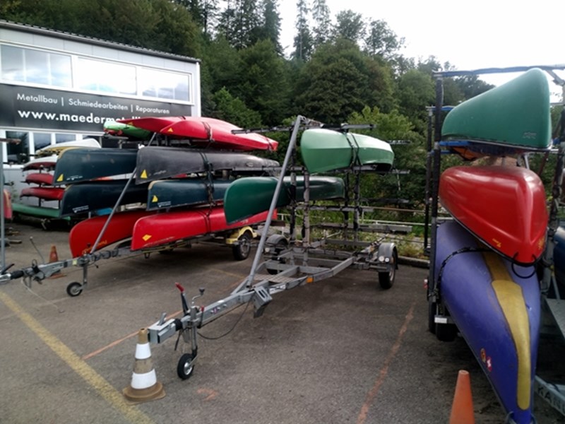 Wir vermieten unsere Bootstransportanhänger mit Platz für bis zu 8 Kanadier oder 16 Seekajaks.
